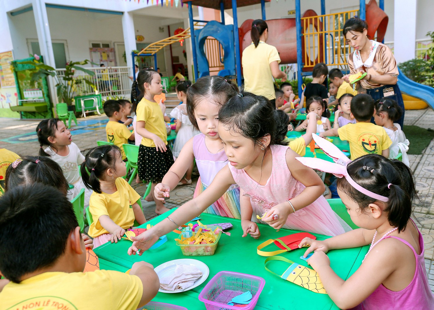 Vào lớp học các bé được trải nghiệm làm các loại đèn lồng, tò he. Biểu diễn các tiết mục chào đón trung thu đầy ý nghĩa.