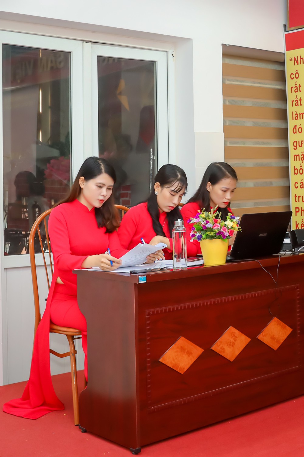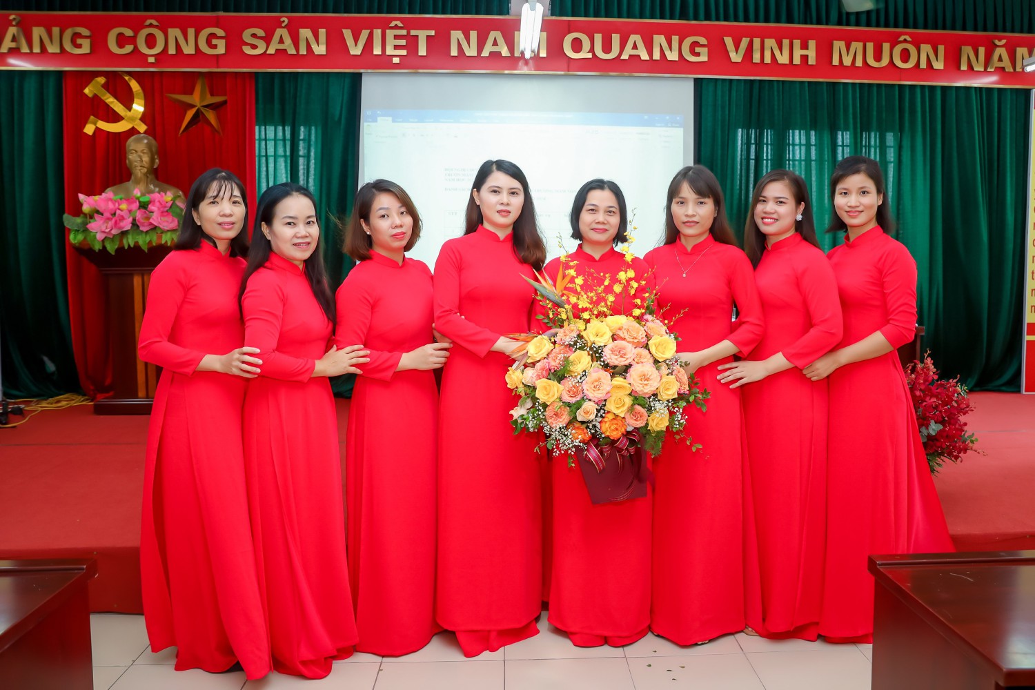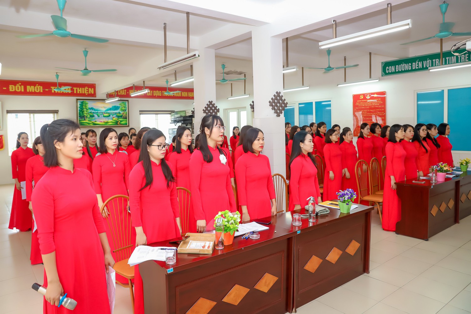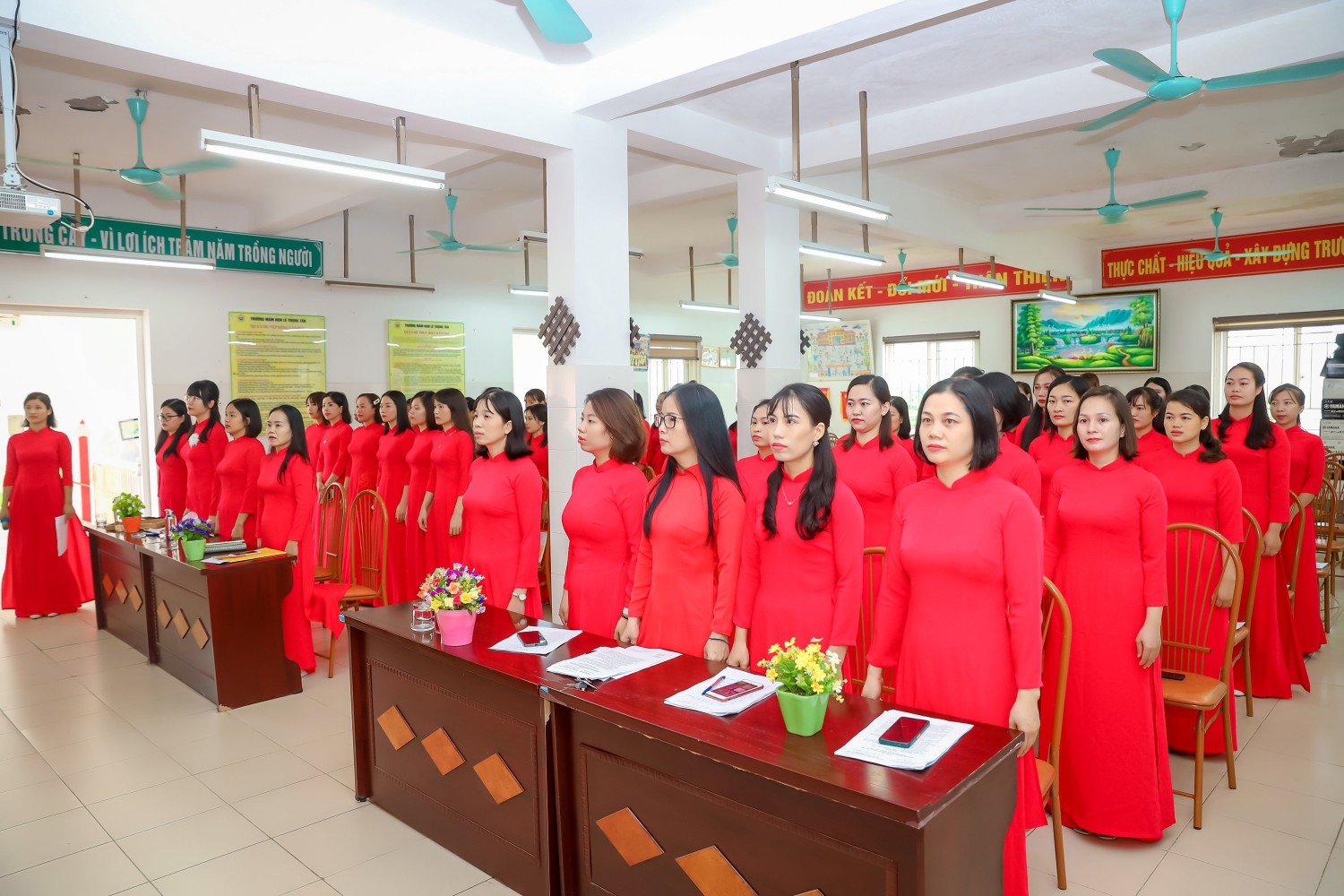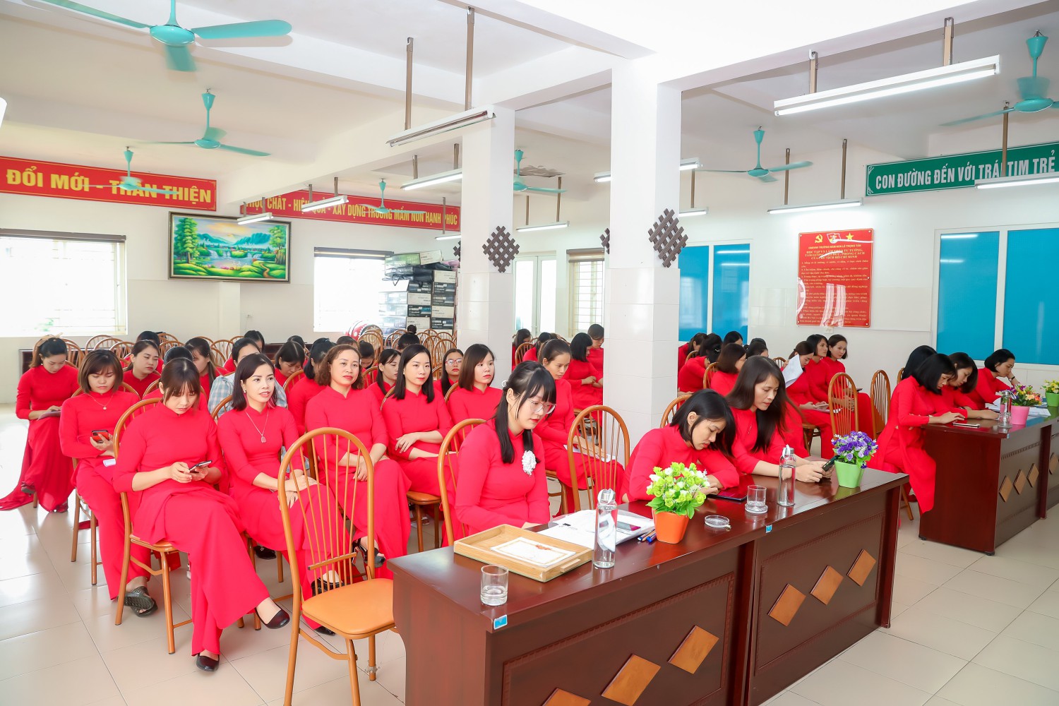 Đúng 8h00, các đồng chí CB GV NV nhà trường đã ổn định để Hội nghị bắt đầu làm việc.