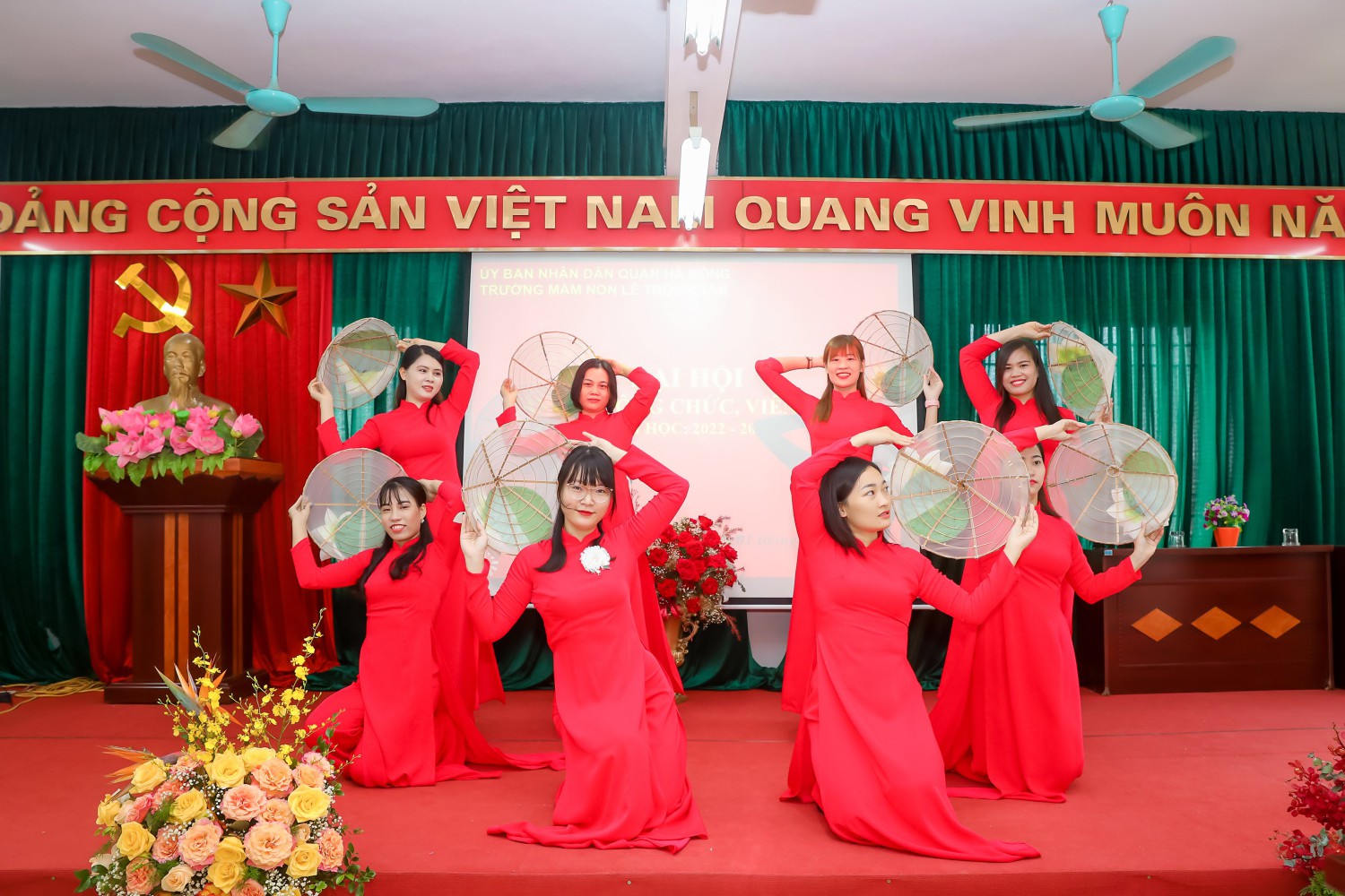 Tiết mục văn nghệ mở màn của các cô giáo Trường Mầm non Lê Trọng Tấn: