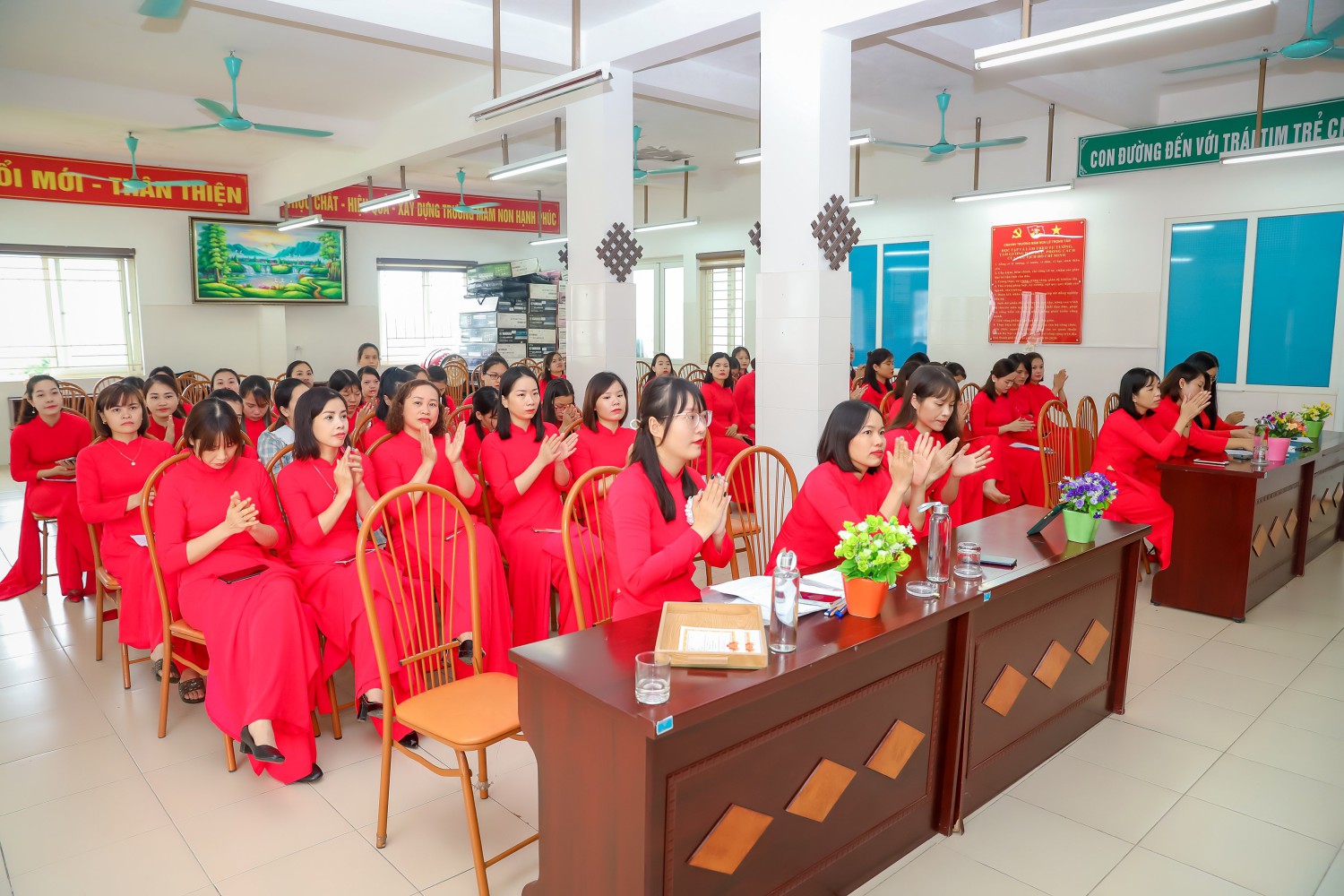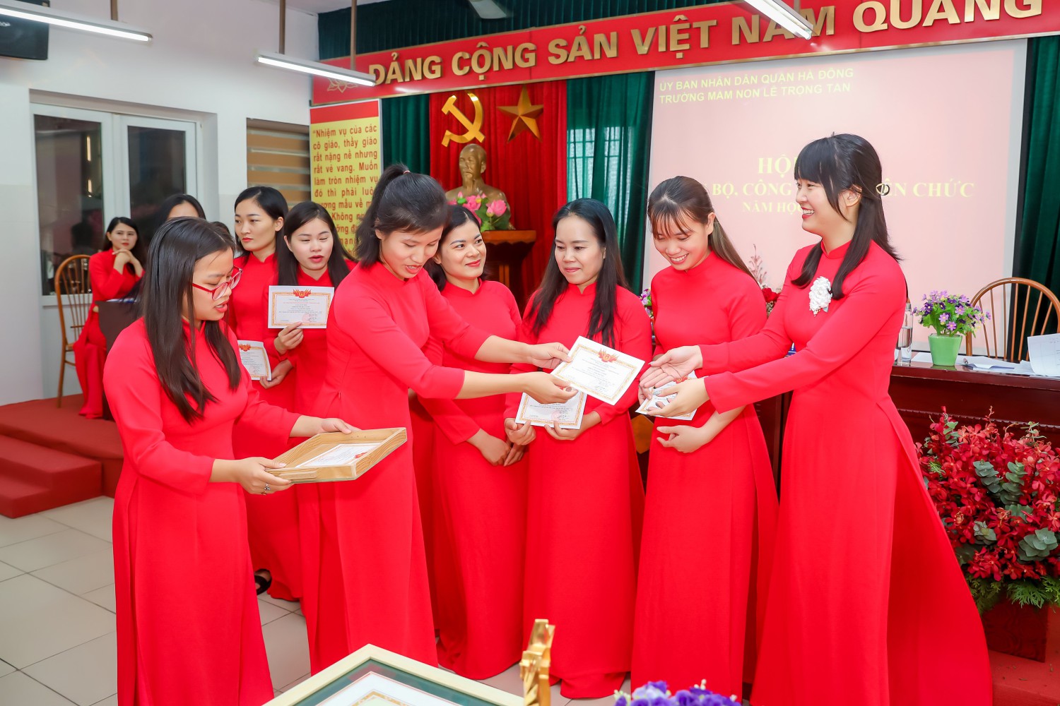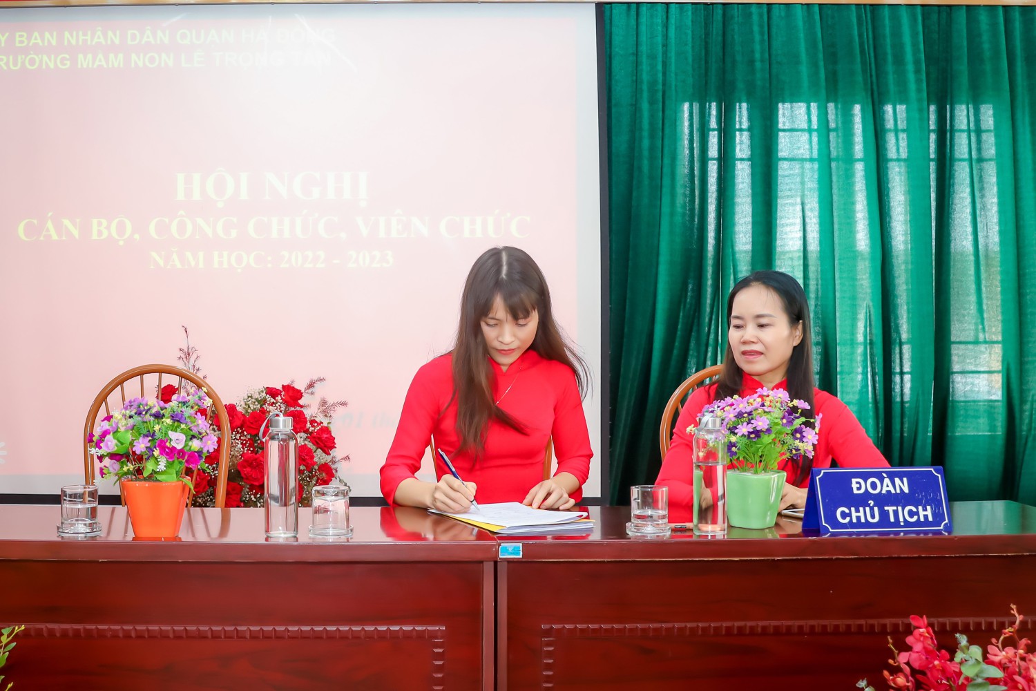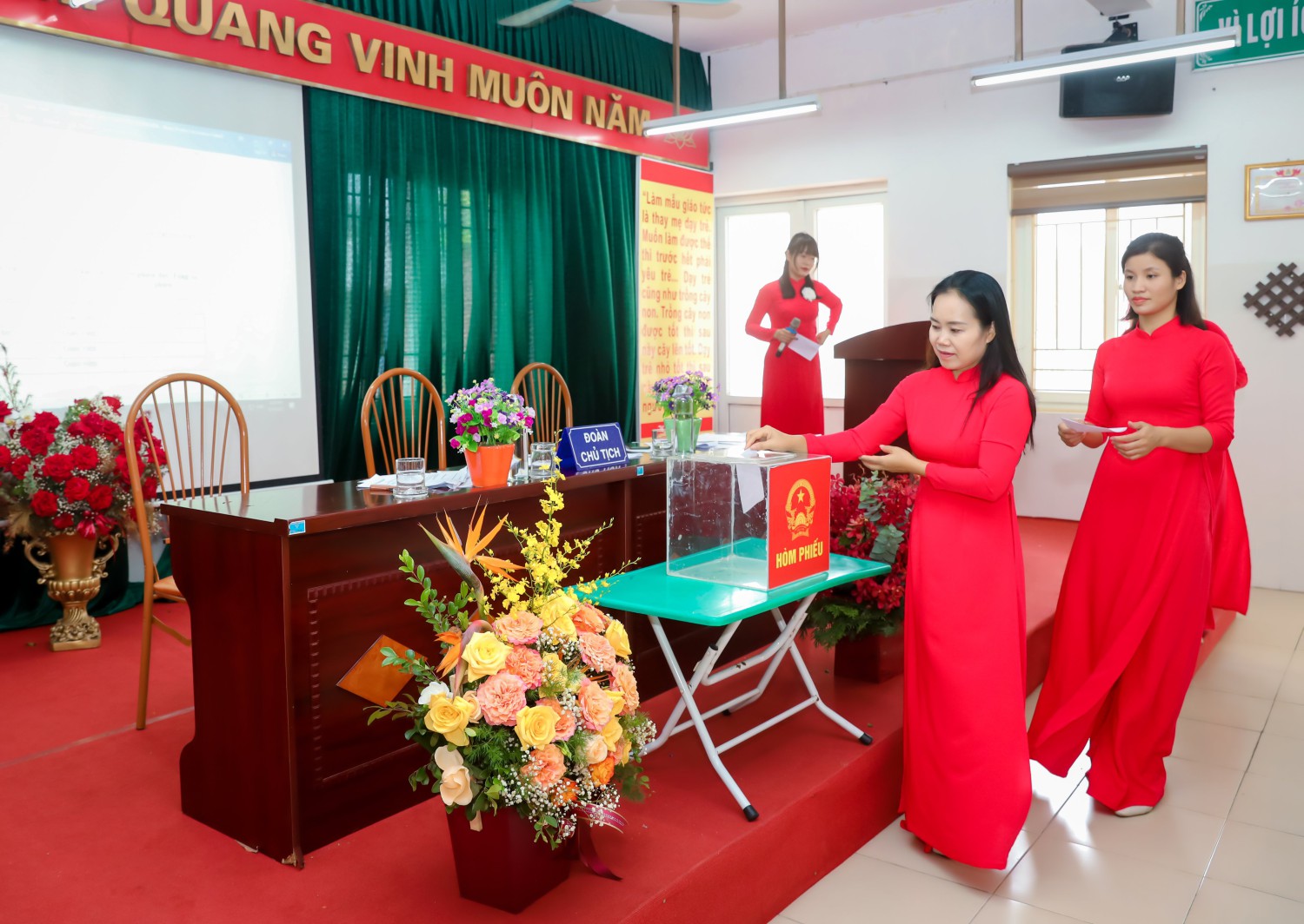 Ban tổ chức giới thiệu thành phần tham dự Hội nghị và nhiệt liệt chào mừng toàn thể các đồng chí CBCC, VC, NLĐ và đoàn viên công đoàn Trường Mầm non Lê Trọng Tấn đã có mặt đông đủ.