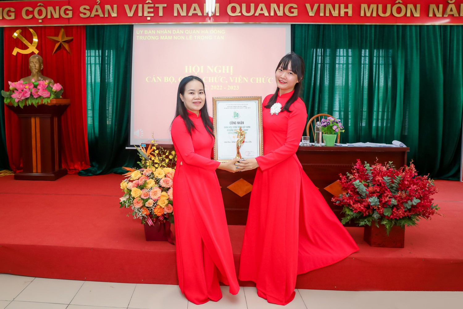 Hội nghị Cán bộ Công chức, Viên chức năm học 2022 - 2023 của Trường Mầm non Lê Trọng Tấn khép lại trong không khí phấn khởi, vui tươi