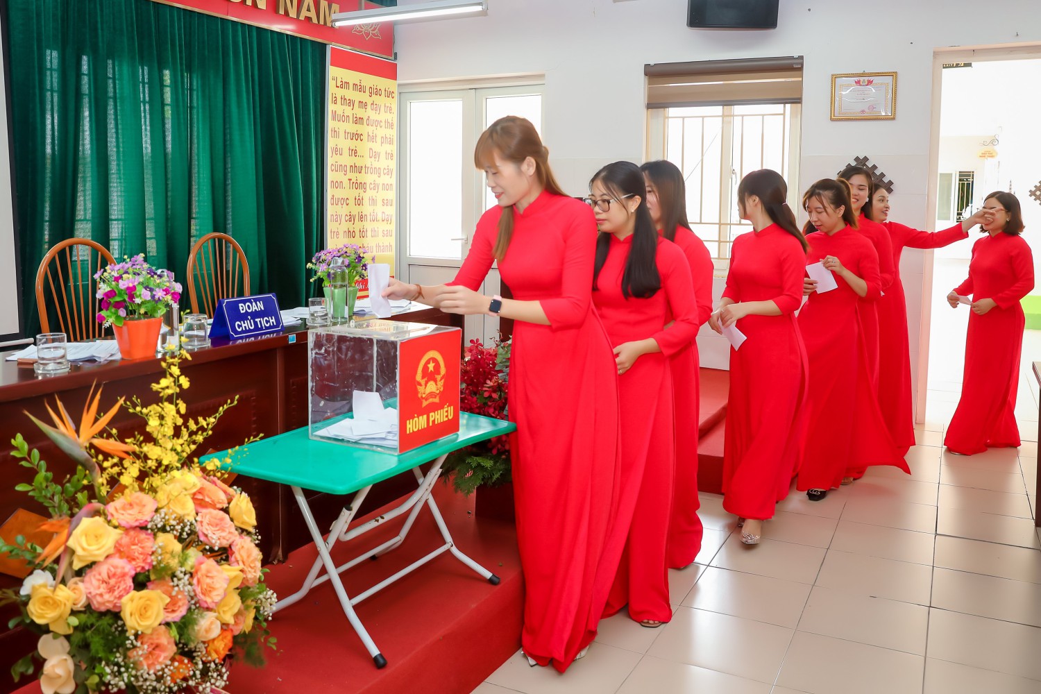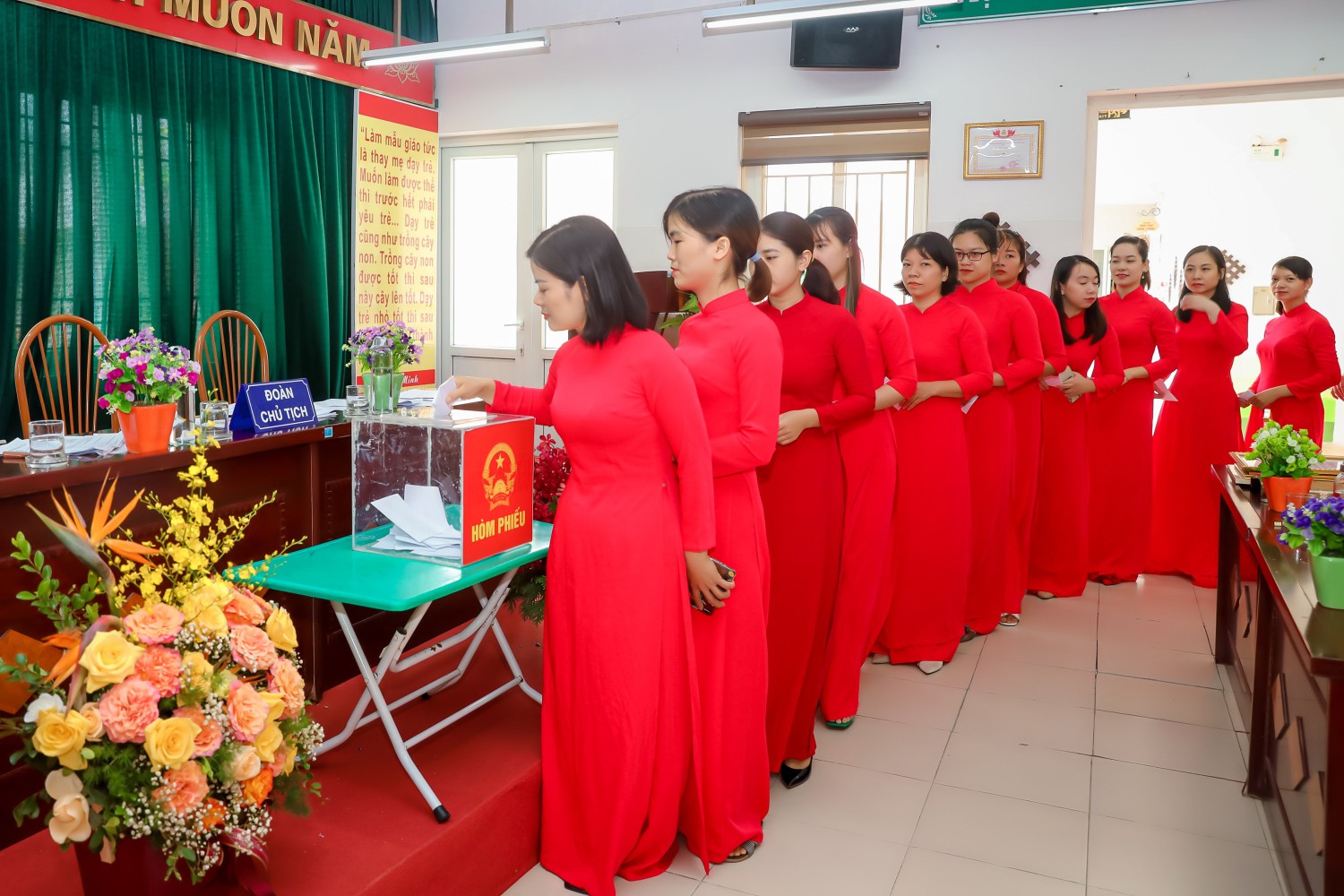 BCH CĐ và Thủ trưởng cơ quan đã họp phiên trù bị theo quy định tại Nghị định 04/2015/NĐ-CP ngày 09/01/2015 để thống nhất giới thiệu Đoàn chủ tịch và Thư ký Hội nghị. 100% đại biểu dự hội nghị đã nhất trí với số lượng và cơ cấu được nêu bằng hình thức biểu quyết. Ban Tổ chức mời Đoàn Chủ tịch, Thư ký Hội nghị CBCC, VC, NLĐ Công đoàn trường Mầm non Lê Trọng Tấn năm 2022 lên điều hành Hội nghị.