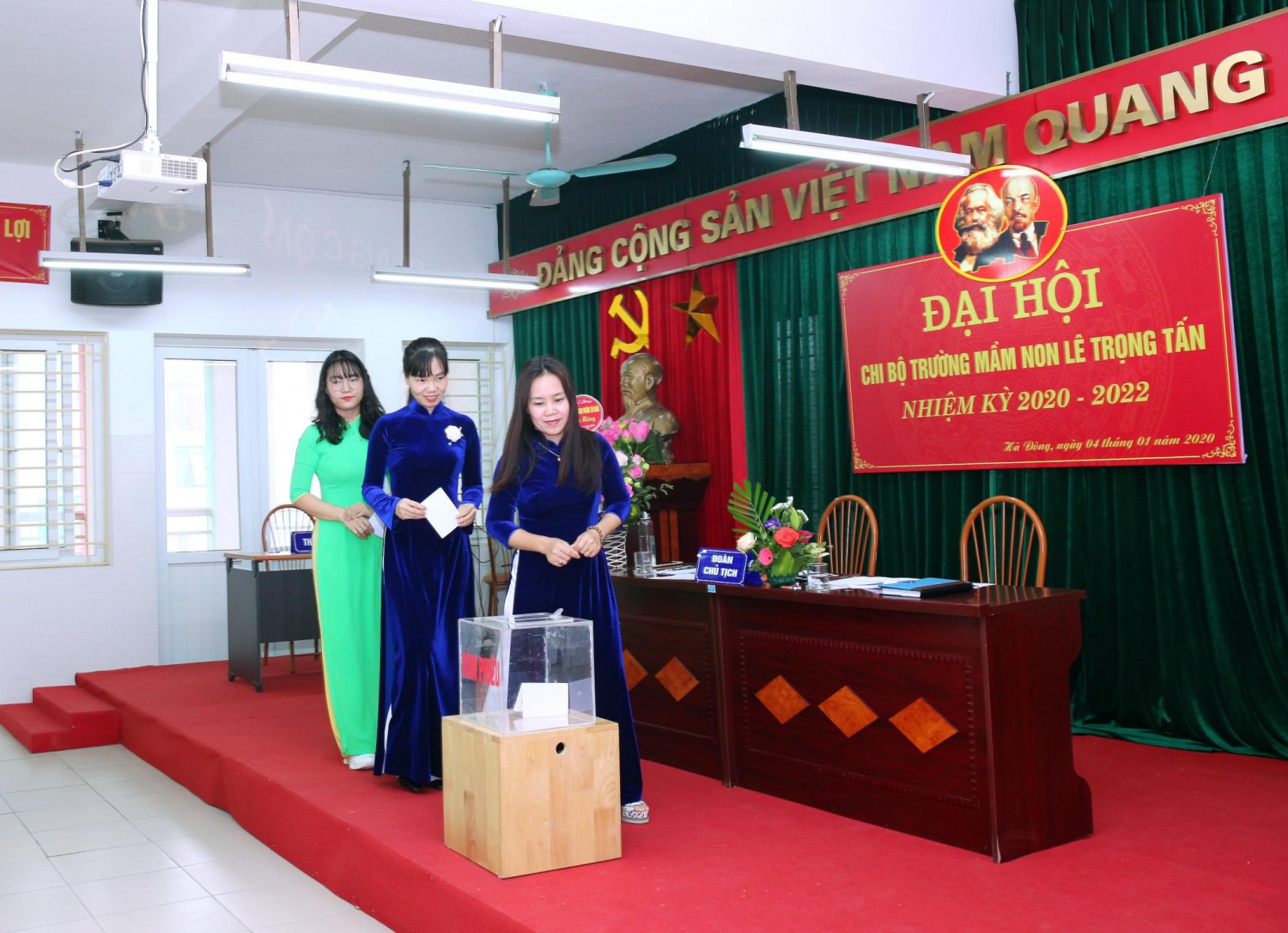 Đại hội chi bộ trường mầm non Lê Trọng Tấn nhiệm kỳ 2020 - 2022 thực sự nêu cao tính Đảng, tất cả đảng viên làm việc với tinh thần khẩn trương, khoa học, trung thực, thẳng thắn, tiếp thu nghị quyết Đại hội với tất cả nhiệt tình cách mạng, với tinh thần mới, khí thế mới và quyết tâm mới. Chi bộ sẽ lãnh đạo các đoàn thể trong nhà trường để biến Nghị quyết Đại hội thành hành động thiết thực và đạt nhiều thắng lợi mới./.