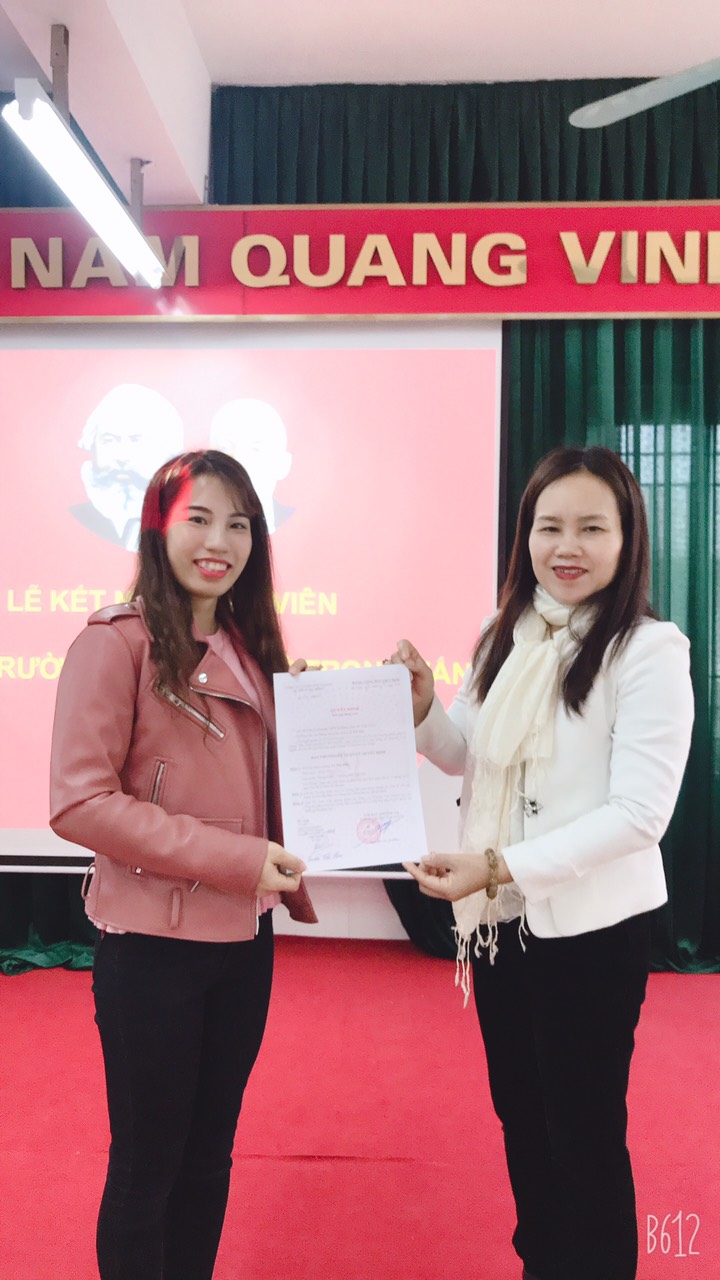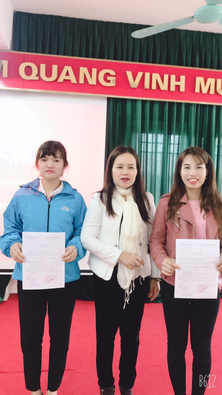 Lễ kết nạp diễn ra trong không khí trang nghiêm và theo đúng các trình tự, thủ tục được quy định. Tại buổi lễ kết nạp, Đ/c Trần Thị Hoa - Bí Thư Chi Bộ đã công bố và trao Quyết định cho các đồng chí Đỗ Thị Hà, Lê Thị Hải.
